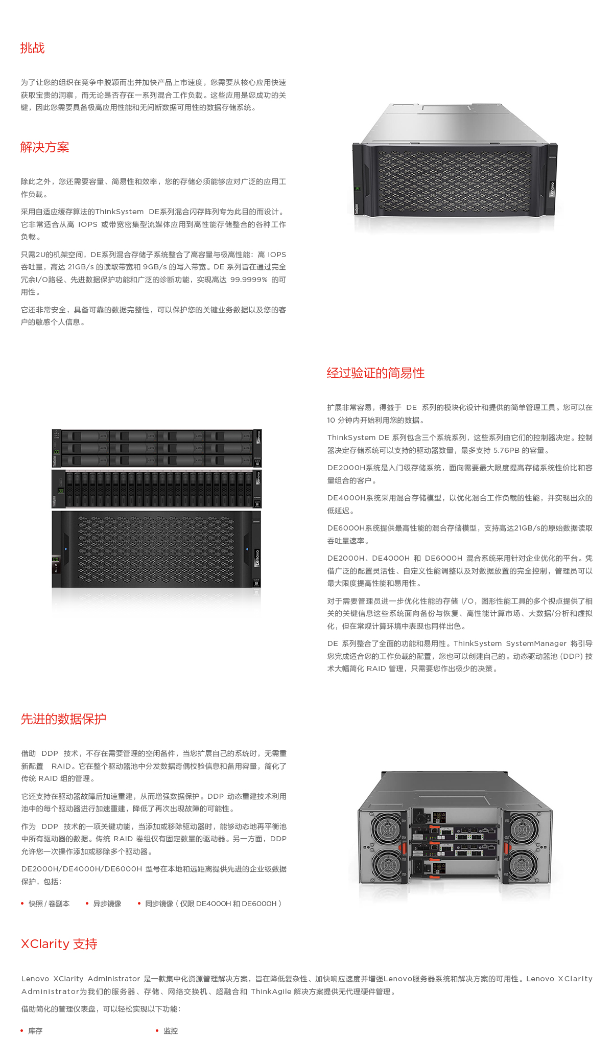 ThinkSystem DE 系列 混合闪存阵列 为现代企业应用实现经济实惠的性能、可靠性和简易性
